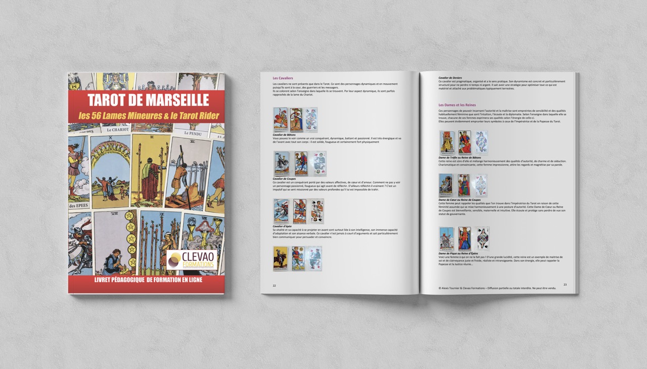 Ce livret est le support pédagogique écrit utilisé dans la formation Clevao consacrée aux 56 lames mineures du Tarot.